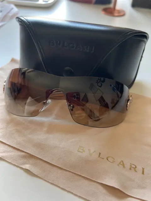 Lentes obscuros BVLGARI. Hermosos lentes obscuros alargados medianos, sin armazón, de diseño espectacular, con detalle pequeño en el lente izquierdo imperceptible, por eso el precio de regalo, gran oportunidad … incluyen estuche y paño…