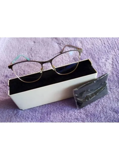 Armazon oftalmico nuevo nunca se han utilizado, con micas de presentacion, color cafe mate con dorado, las varillas tienen en la parte interna color azul claro, para rostro mediano o pequeño.