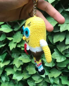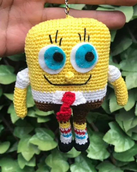 Llavero Bob Esponja NUEVO. Hermoso llavero tejido a crochet. NUEVO. Perfecto para llaves, mochila o bolso. Medidas: 15x8 cm aprox.