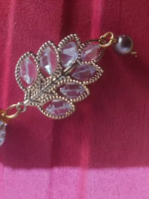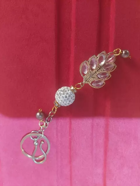 Llave en forma de hoja con cristaleria, no le falta ninguna piedra no se ah usado, puede colocarse en un pantalón para que luzca