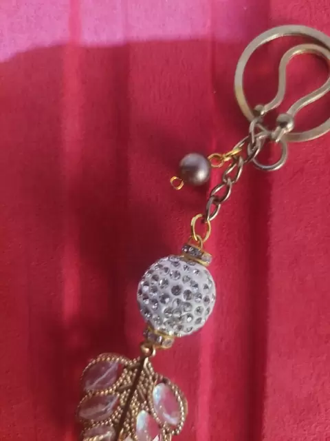 Llavero hoja cristaleria. Llave en forma de hoja con cristaleria, no le falta ninguna piedra no se ah usado, puede colocarse en un pantalón para que luzca