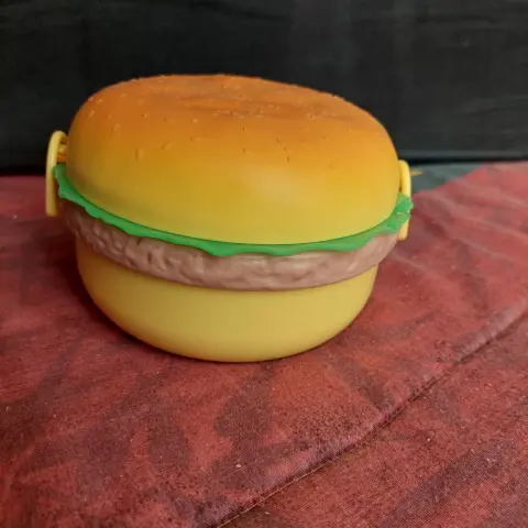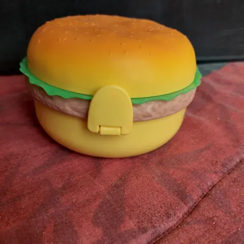 Lonchera hamburguesa. Envio sabados tal vez antes, no hago intercambios ni apartados. Lonchera divertida de forma de hamburguesa, a los peques les encantará.