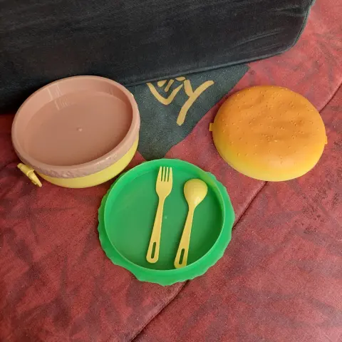Envio sabados tal vez antes, no hago intercambios ni apartados. Lonchera divertida de forma de hamburguesa, a los peques les encantará.