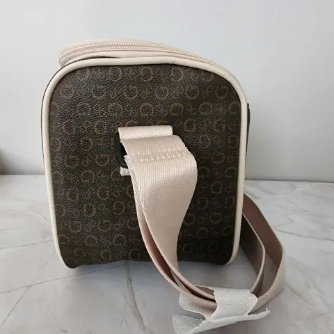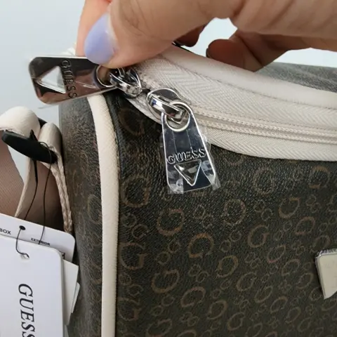 Producto nuevo y original con etiqueta.Pregunta por disponibilidad.Hermosa lonchera marca GUESS padrisima.Color café con monograma de la marca en color café claro. Cierre, strap y herraje con el nombre de la marca en color beige.