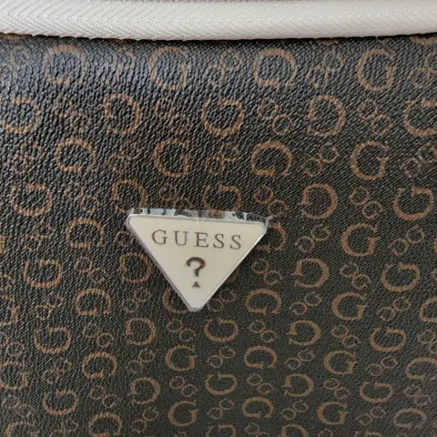 Lonchera marca Guess. Producto nuevo y original con etiqueta.Pregunta por disponibilidad.Hermosa lonchera marca GUESS padrisima.Color café con monograma de la marca en color café claro. Cierre, strap y herraje con el nombre de la marca en color beige.