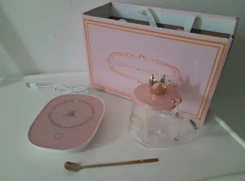 Taza rosa de cristal 👸. Hermosa taza rosa de cristal con calentador para mantener tu bebida caliente, en hogar u oficina, trae cable usb
