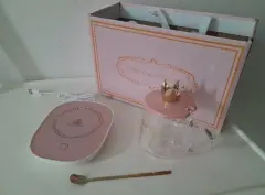 Hermosa taza rosa de cristal con calentador para mantener tu bebida caliente, en hogar u oficina, trae cable usb
