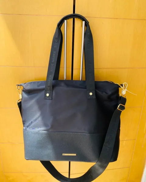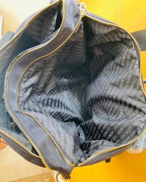 BOLSA GRANDE STEVE MADDEN NEGRA. Maleta bolsa ideal para el Gym O viajar es color negro con letras blancas tela impermeable y lavable ideal para las Lluvia y no mojes lo que llevas dentro . Lleva un monedero incluido en tu bolsa . Las correas son opcionales se pueden quitar y poner cuando tú lo decidas . Práctica y muy bonita . Producto de USA