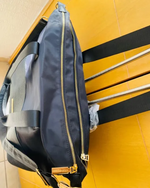 Maleta bolsa ideal para el Gym O viajar es color negro con letras blancas tela impermeable y lavable ideal para las Lluvia y no mojes lo que llevas dentro . Lleva un monedero incluido en tu bolsa . Las correas son opcionales se pueden quitar y poner cuando tú lo decidas . Práctica y muy bonita . Producto de USA