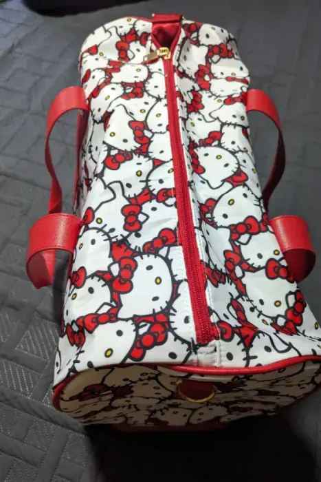 Con su color rojo brillante y su simpático estampado de Hello Kitty, seguro que atraerá todas las miradas. El bolso está fabricado en piel de alta calidad e incorpora ruedas para facilitar su desplazamiento, lo que lo convierte en una opción ideal para viajar. Con sus 20 pulgadas, esta bolsa de viaje tiene el tamaño perfecto para un equipaje de mano o una escapada de fin de semana.