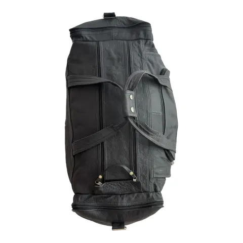 Maleta negra de piel con agarraderas y correa expansible para colgar al hombro o cruzada, tiene varios compartimentos con cierre en el exterior. En el interior no tiene compartimentos. Es muy amplia. Las agarraderas fueron reforzadas.Medidas aproximadas: largo 56 cm, alto 32 cm y ancho30 ст.No tiene detalles funcionales, solo estéticos en los herrajes (cambio de color).