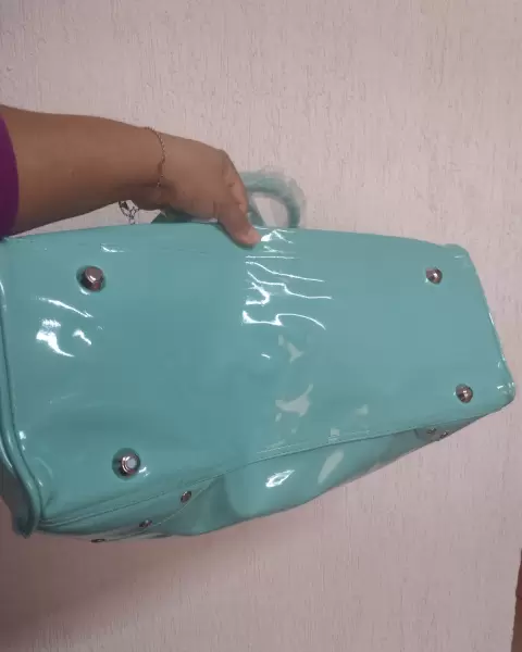 Maleta de viaje tipo charol. Hermosa maleta de viaje teien cierre como principal y broche magnético tipo planificada con estoperoles plata.Mide 36*50*16 (alto,largo,base).