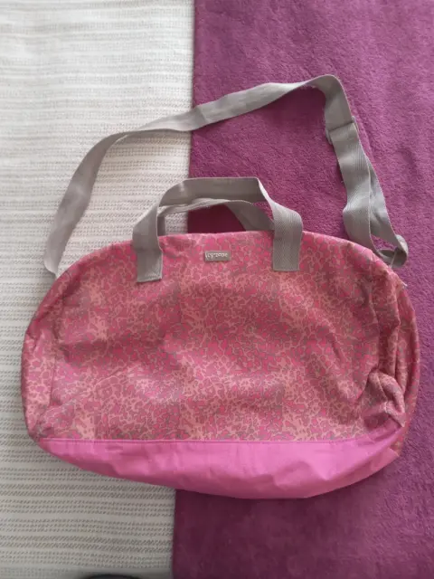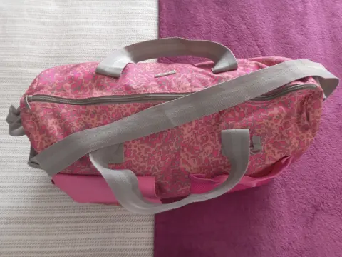 Hermosa maleta deportiva tipo para gimnasio animal print con rosa. Esta bastante amplia, cabe perfectamente como 3 mudas de ropa más zapatos.Un detalle en una de las bolsas exteriores *última foto.