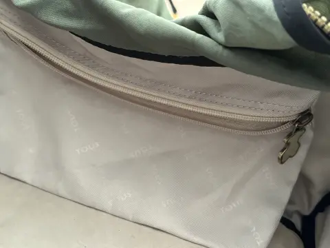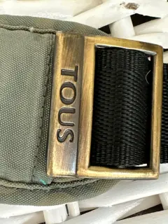 Maleta lona marca Tous. Maleta de lona, marca toes, color verde, con bandolera, talla M, bolsas laterales, con funda.