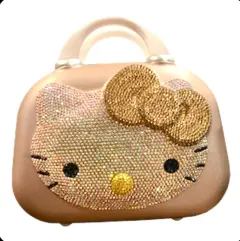 Hermosa Maleta Neceser Cosmetiquera de viaje con cristales, material ABS, material rígido y resistente. Los Cristales se colocaron uno x uno.Color Golden Rouse28x18x14