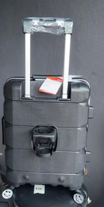 Maleta negra rigida marca YIF. Nueva y Etiquetada, con las medidas justas para ir en la canina de avión. Trae práctico portavasos para tu café, sistema de seguridad con conbinación. Puerto USB y buenisima calidad, las llantas no se atorán.