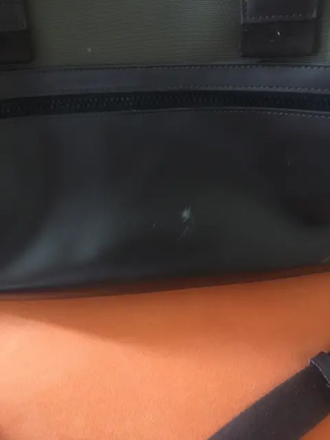 Bolsa portafolio para Lap marca Cloe en color verde botella combinada con color café, casi nueva, solo tiene un detalle en la parte de enfrente.