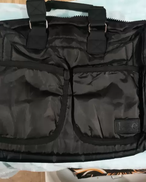 Linda bolsa porta laptop, con bolsas al frente y amplias. Marca Lee, nueva