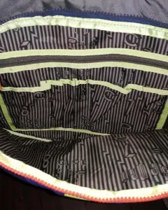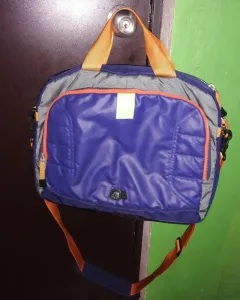 Hermosa mensajera, trae 3 cierres, en el más grande trae porta laptop, en el de enfrente para los lápices y demás. Sin detalles, parece nueva