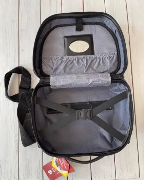 Material rígido, cuenta con correa para cargar, también se puede poner en la maleta como se ve en la foto, medidas: 35 cm largo, 28 cm de alto y 18 cm. Nuevo sin detalles.Neceser Gabol rígido, de color gris y con capacidad hasta 12 L.El material de fabricación es ABS y su interior está compuesto por un forro de alta calidad.Tiene acople a maleta, para así facilitar su transporte.Medidas Neceser: 35x28x18 cm - Peso: 1,38 kg.