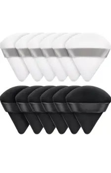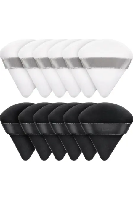 AMMON 12 piezas de polvo de maquillaje, esponja de maquillaje suave triangular, esponja de maquillaje de terciopelo, soplo de algodón puro para polvo mineral suelto, herramientas de contorno corporal