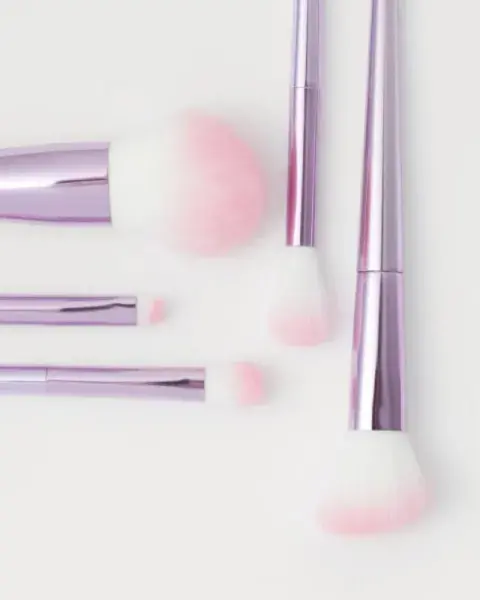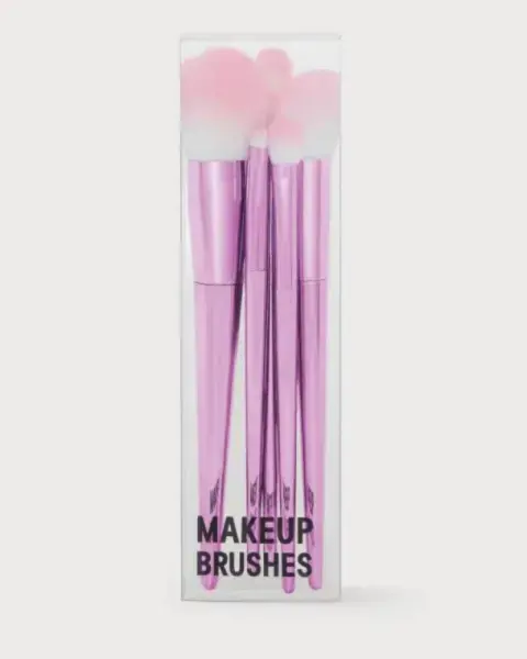 Set de 5 brochas de maquillaje. Un set de cinco brochas de maquillaje con las que podrás utilizar todas las técnicas. Contiene brocha para polvos, brocha angular para colorete, brocha para iluminador, brocha para aplicar y mezclar sombra de ojos, y brocha de precisión para delineador de ojos.