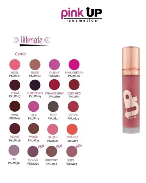 Labiales pink up (6). Por el precio publicado incluye los 6 labiales son colores diferentesTonos FiushaFresaPlumMudDeep redLilaLabial liquido mate de larga duración. Gracias a sus ingredientes deja un color vibrante e intenso. Su textura es suave y cremosa, seca en segundos sin resecar tus labios.