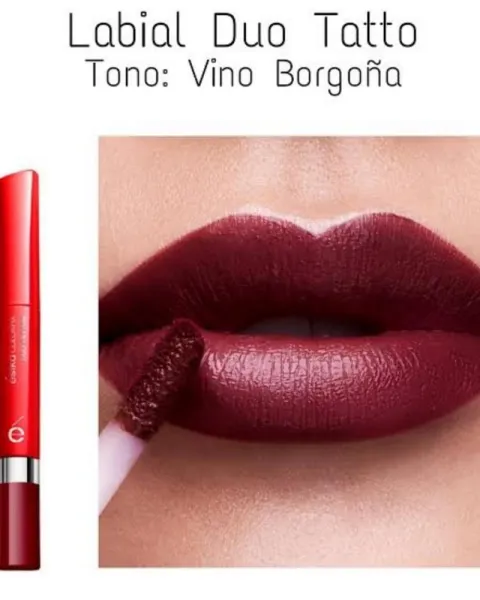 Set labiales esika indelebles 48 h de duración, no traspasan ni se corren. Tono pimienta caliente (líquido), vino borgoña(líquido) y vino deliss(barra)
