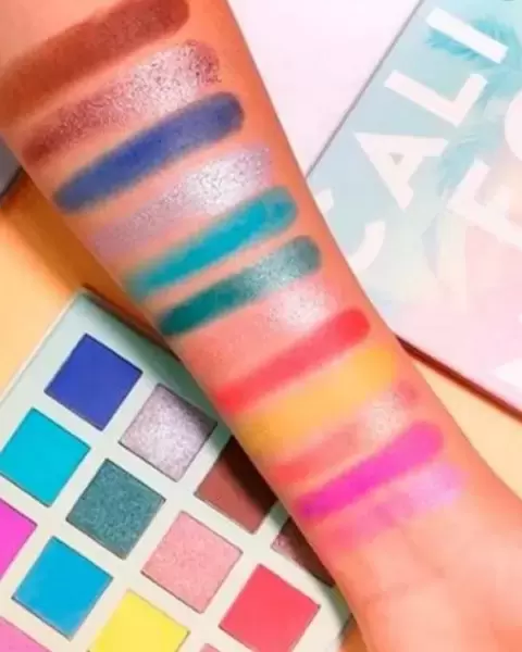Paleta de maquillaje California. Hermosa paleta cuadrada con 16 colores brillantes y diversos, ideal para dar vida a nuestros ojos.