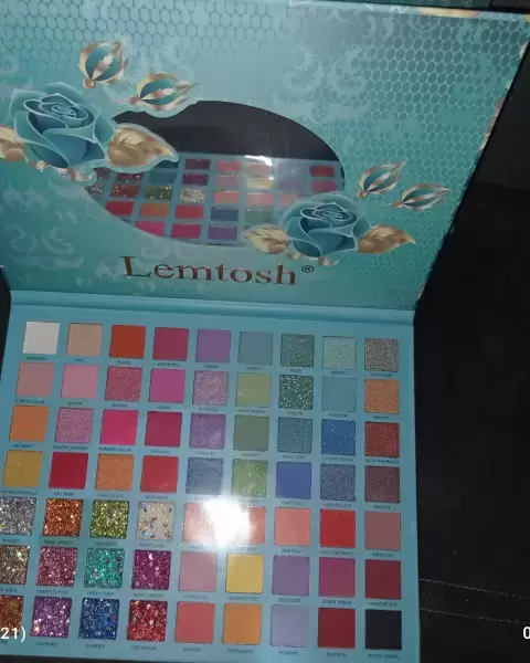 Paleta de sombras de ojos 63 tonos con glitter y espejoConsta de 63 tonos de alta pigmentación.Colores: mate, suaves, brilloso.