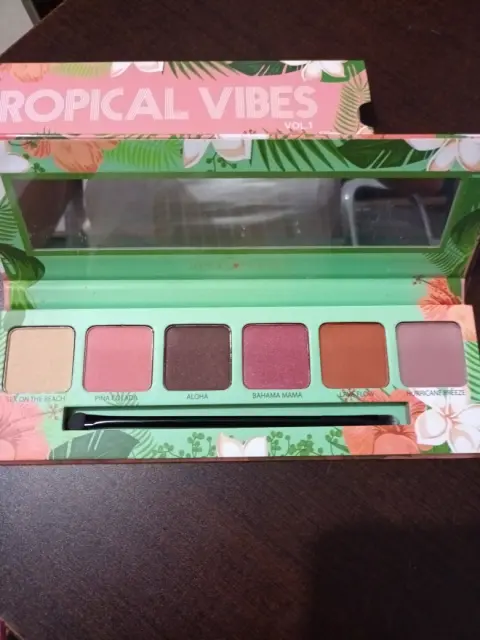 Sexteto de sombras, Tropical Vibes Vol. 1 de la marca Trend Beauty. Nuevas sin detalles, el empaque incluye un espejo y aplicador.