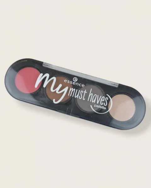 Paleta de sombras para ojos Essence. Paleta de 4 colores de sombras rosa, bronce, gris y arena, excelente duración con colores profundos.