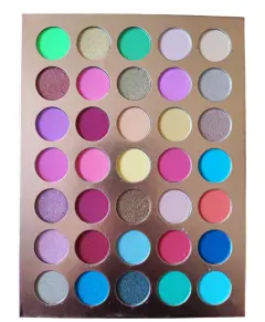 Paleta de sombras con 35 tonos diferentes, buena pigmentación, todos los colores super en tendencia.