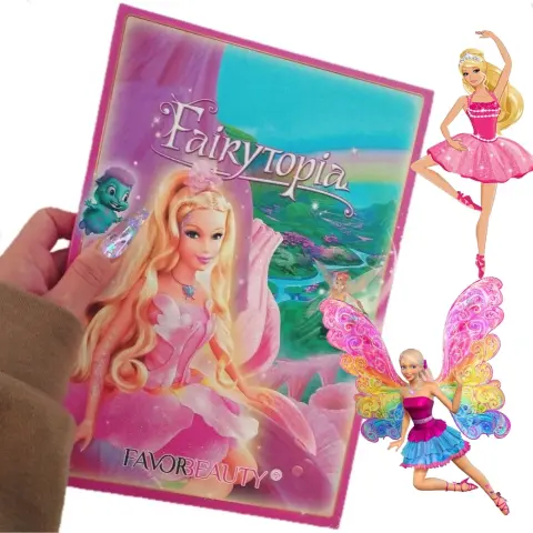 Paleta Favor Beauty Barbie. Descubre la Paleta Favor Beauty Edición Especial Barbie Fairytopia, con 63 sombras en un formato de paleta única. La línea Princesas presenta el modelo Princesas Favor Beau, ideal para crear looks mágicos y encantadores. Con una amplia gama de colores, esta paleta te permitirá experimentar y crear looks únicos y originales. Perfecta para todas las amantes del maquillaje y la fantasía.