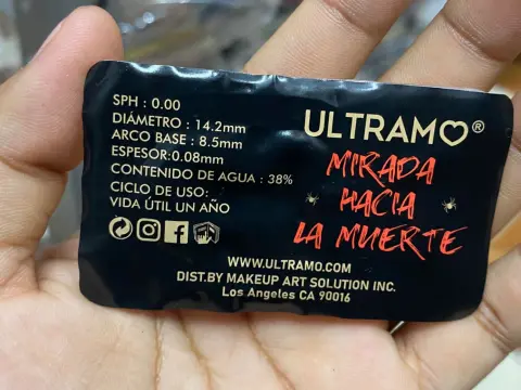 Pupilentes marca Ultramo ideal para esta tiempos de Halloween, medidas de diámetro:14.2 mm medida de arco base: 8.5 mm. Tiene una vida útil de un año después de a verse sacado de su empaque