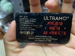 Pupilentes marca Ultramo ideal para esta tiempos de Halloween, medidas de diámetro:14.2 mm medida de arco base: 8.5 mm. Tiene una vida útil de un año después de a verse sacado de su empaque. Contiene instrucciones de como aplicar los pupilentes dentro de la caja
