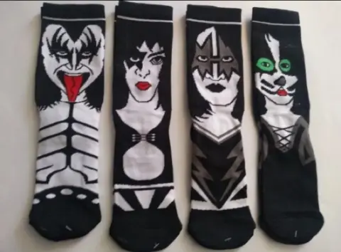 ✨4 pares de Calcetas del grupo KISS, quedan del No. 22 al 28 y llegan aproximadamente a mitad de la pantorrilla. Son unisex✨