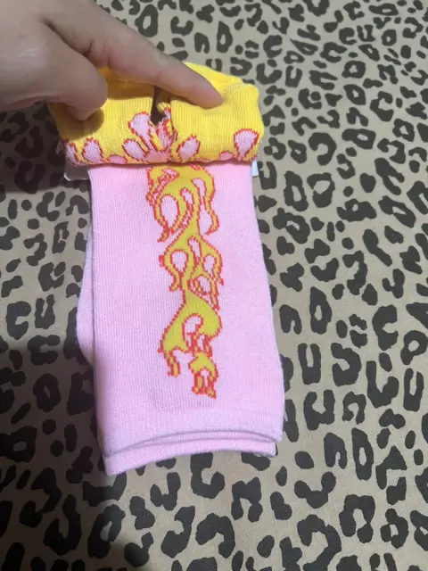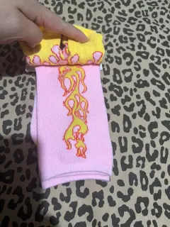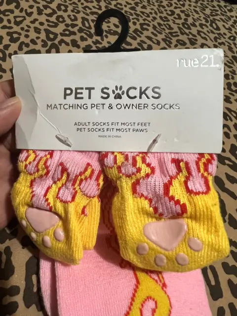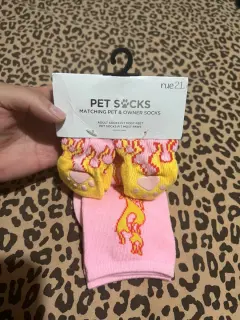 Calcetas locas para ti y tu 🐩. Dúo de calcetas para ti y para tu 🐩, en tonalidad rosa con amarillo, grabado de flama, súper original, marca Rue 21