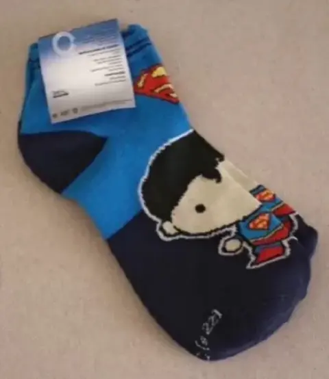 Calcetines de supermán y mujer maravilla. Calcetines de súper héroes, de la mujer maravilla y supermán, se van juntos. Están lindos. Son talla mediana Nuevos con etiquetas. Se van los 2 juntos.