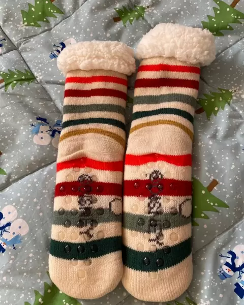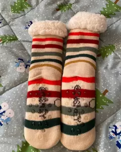 Calcetines invernales. Super calientitos y cómodos. Afelpados por dentro, son de mujer considero que quedan a talla M. Uno es un poco más pequeño que el otro pero imperceptible a simple vista y no interfiere en nada en su uso.