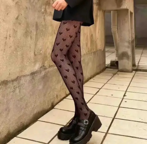 Medias de red color negro con patrón de corazones Unitalla nuevas sin ningún detalle