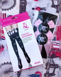 Medias Moños y Calaveras. Estas pantimedias son el complemento perfecto si tu estilo es dramático o alternativo 🖤💀🫶🏽..👻Prendas sin detalles, nueva en su caja💜Envíos a todo 🇲🇽 y el 🌎👽Entregas GRATIS en puntos estratégicos en León Guanajuato🏃🏼♀️💀Entregas a domicilio en León Guanajuato (aplican restricciones) 🚲.. 👽💜Tod@s l@s client@s obtendrán una sorpresa 💜👽