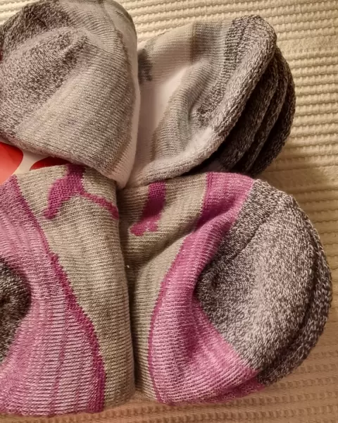 Set con 8 pares de Calcetas cortas, que no se muestran con el uso de zapato deportivo.Las prendas tienen la siguiente composición:77% poliester 19% algodón 2% elastodieno2% elásticoSon 4 pares en tonos gris-violeta y 4 gris-blancoLas prendas tienen al.frente una malla, que permite mantener los pies frescos y secos.Prendas calidad PUMA...