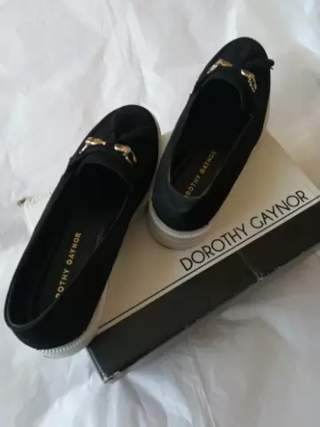 Mocasín blanco y negro tipo ante. Mocasín en blanco y negro alto 3 CM tipo ante con adorno en punta