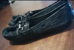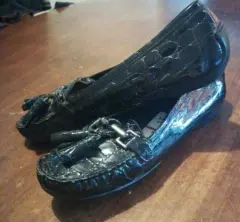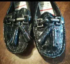 Mocasín dama estuart weitzman. Mocasín de cuero patentado Stuart Weitzman negro cocodrilo en relieve punta moc borla plana, completamente nuevos con su etiqueta..