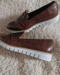 Mocasines color cognac. Mocasines color cognacForro sintético tipo piel de cocodrilo color cognac.Son totalmente nuevos.En la etiqueta dicen 24.5 pero en realidad le van bien a un 24 vienen reducidos.