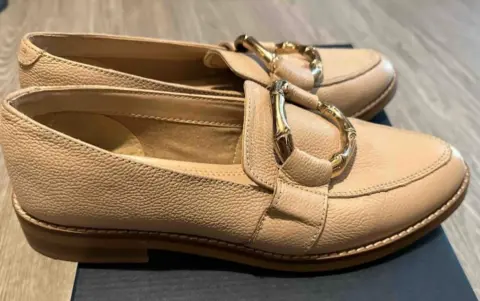 Mocasines color palo de rosa, totalmente de piel, tienen muy pocas puestas