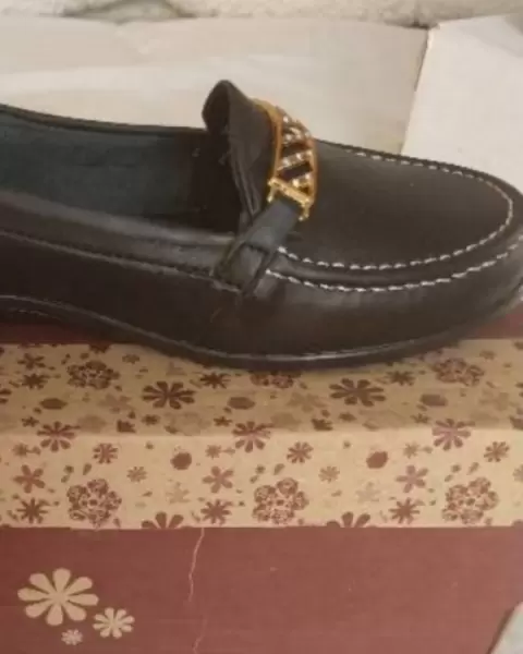 Mocasines negros. Zapato de piso color negro Con plateadoNo tiene ningún detalleSon cómodos , no me quedaron !