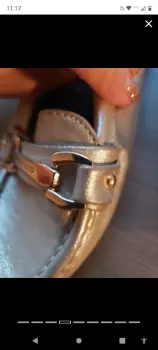 Mocasines color plata con hebilla Anne Klein no raspados ni rotos, el único defecto que tienen es que le falta la plantilla a uno de los zapatos. Muy cómodos, solo se usaron dos veces