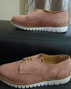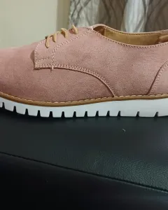 Mocasines rosas. Mocasines de gamuza rosas, con agujetas, con suela antiderrapante